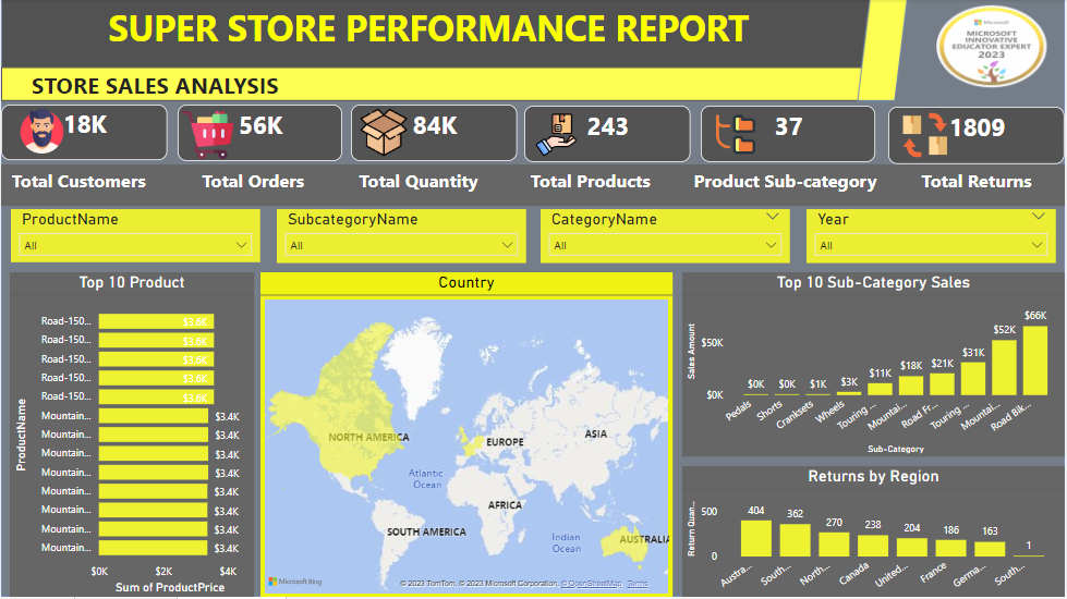 This project involves advanced data analysis using Power BI to gain insights from a Superstore dataset. ๐Ÿ›’ After thorough data cleaning and processing, a dashboard was created using DAX and various visualizations. ๐Ÿ“Š Key insights include: 1๏ธโƒฃ Total Customers ๐Ÿ‘ฅ 2๏ธโƒฃ Total Orders ๐Ÿ“ฆ 3๏ธโƒฃ Products Sold ๐Ÿ›๏ธ 4๏ธโƒฃ Total Returns โ†ฉ๏ธ 5๏ธโƒฃ Top-Performing Products and Regions ๐ŸŒŸ